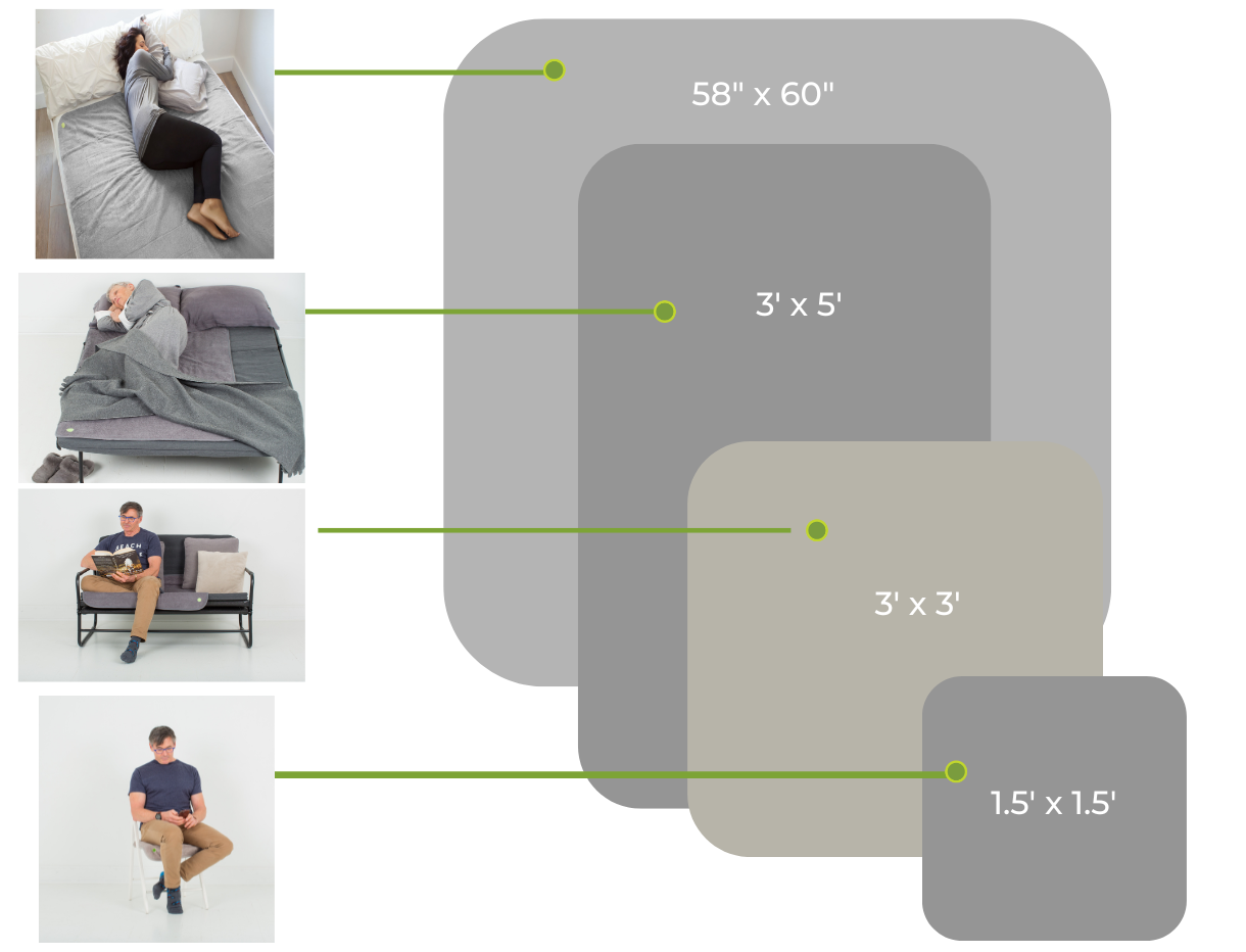 - The 3’ x 3’ incontinence mat offers coverage for smaller surfaces or for adults with limited mobility while sleeping. Common usage is in sitting areas such as sofas and chairs. Not recommended for bed size double or larger.